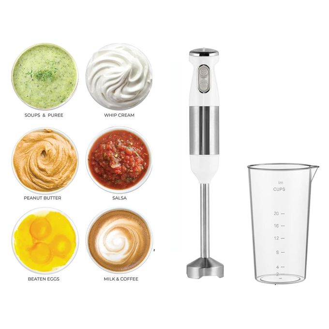 خلاط يدوي إكسبان – شفرات من الفولاذ المقاوم للصدأ/تيربو/600 مل/600 واط (أبيض)