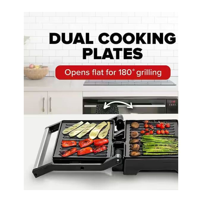 - فتح 180 درجة: تصميم مرن يتيح لك استخدامه كصانع سندوتشات أو شواية.