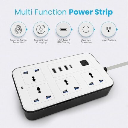 Electricity Joint & Connector (6 AC Ports + 3 USB Ports + 1 Type-C)(634) is designed for modern homes and offices, ensuring you have enough power outlets for all your devices while maintaining safety and convenience.
