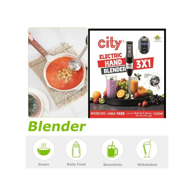 City 3 In 1 Hand Blender/Speeds/ 1200 Watt(HMA-1028)