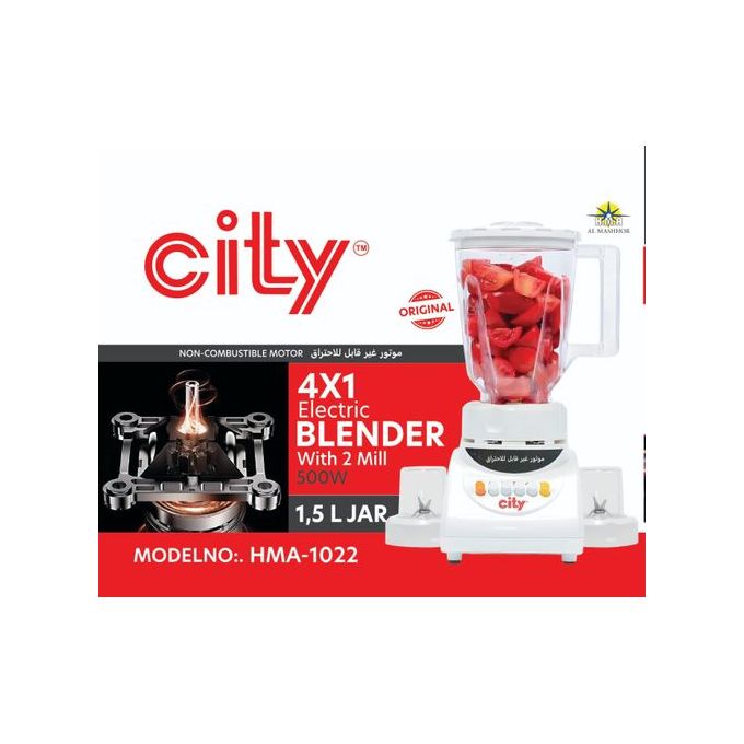 City 4X1 Blender 1.5 L with 2 Grinder Mill – 500W Power and 4 Speeds