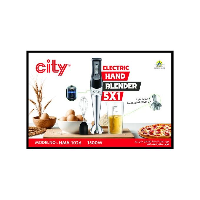 City 5in1Stainless Hand Blender+Egg Beater Whisk/100ml Cup/1500W(HMA-1026)