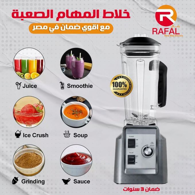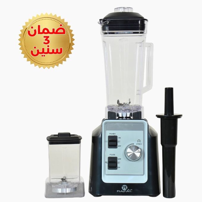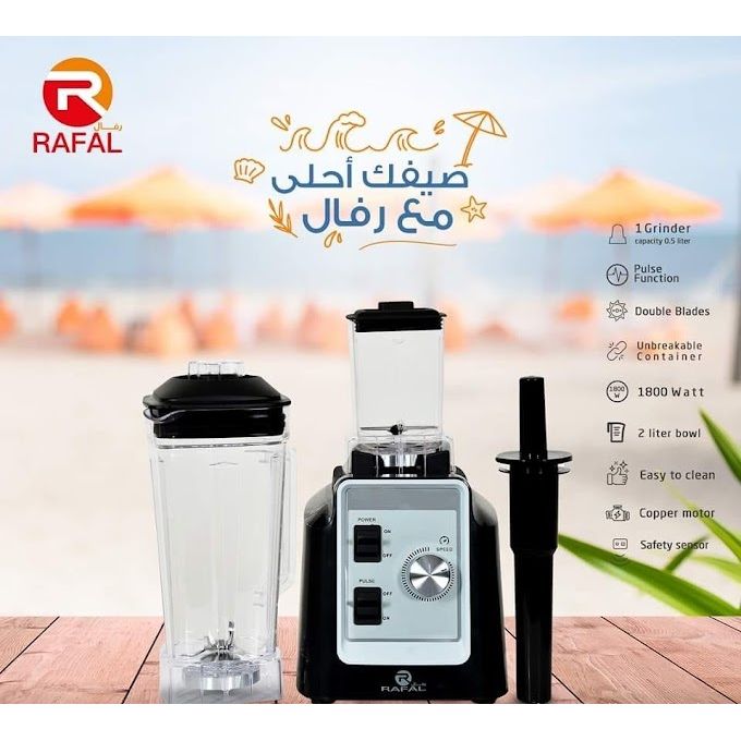 • Brand  RAFAL  Blender  jar  with  a  capacity  of  2 liters , Half  a  liter  grinder  capacity: 1800  watts  Equipped with  variable speeds  Copper  motor  Safety  sensor  when  operating  whe n installing  the  jug