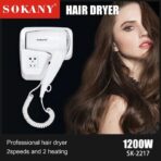 Sokany Electric Wall Mounted Hair Dryer- 1200W For Bathroom (Hotels,Clubs& Houses) /SK-CF-2217