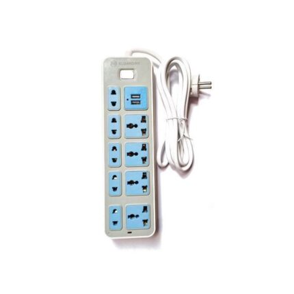 Surge Protector – 7 Regular Ports + 2 USB Ports – 1.5m – Gray/Blue